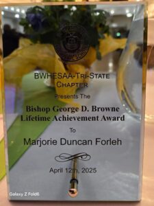 B.W. Harris Episcopal School Alumni Association-USA, Inc. Presented the Bishop George D. Browne Lifetime Achievement Award to Marjorie Duncan-Forleh at their 23rd Annual Award Program in Glenridge, NJ.